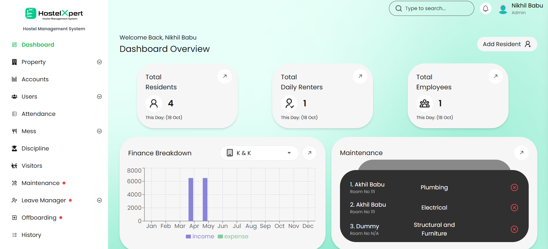 A complete digital solution for managing hostel operations efficiently. It simplifies student registration, room allocation, fee tracking, and attendance with an intuitive and user-friendly interface.